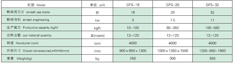 本機純屬高速運轉機械,采用一面快口刀刃,另一面為四擊式刀片,使被粉碎物料經(jīng)高速旋轉刀片剪切獲得粉碎。該機還可根據不同物料選用各種形狀及尺寸不同的刀片,粒度大小通過(guò)更換篩網(wǎng)獲得。